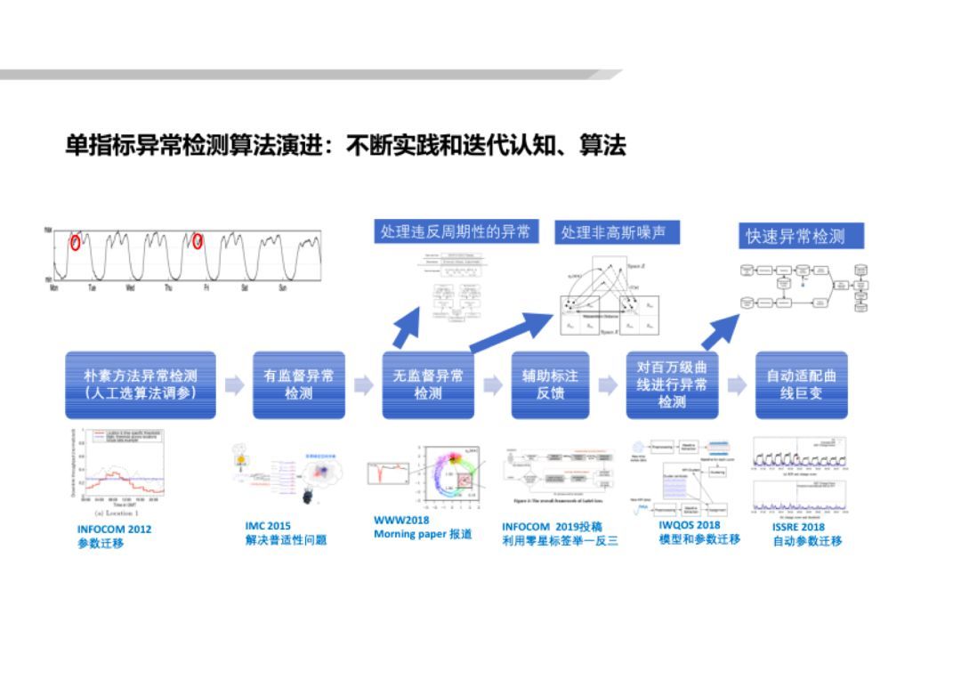 7)通过参数自动迁移,,在指标模式漂移后自动适配异常检测算法。。。最后这些算法整合成了我们非常智能的单指标异常检测算法。。。。
