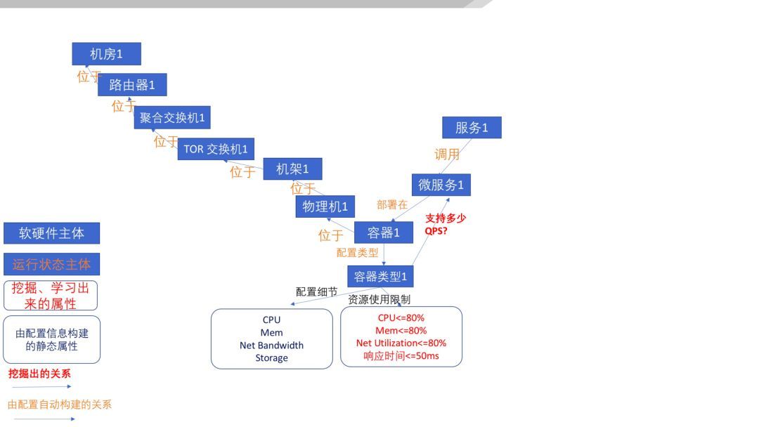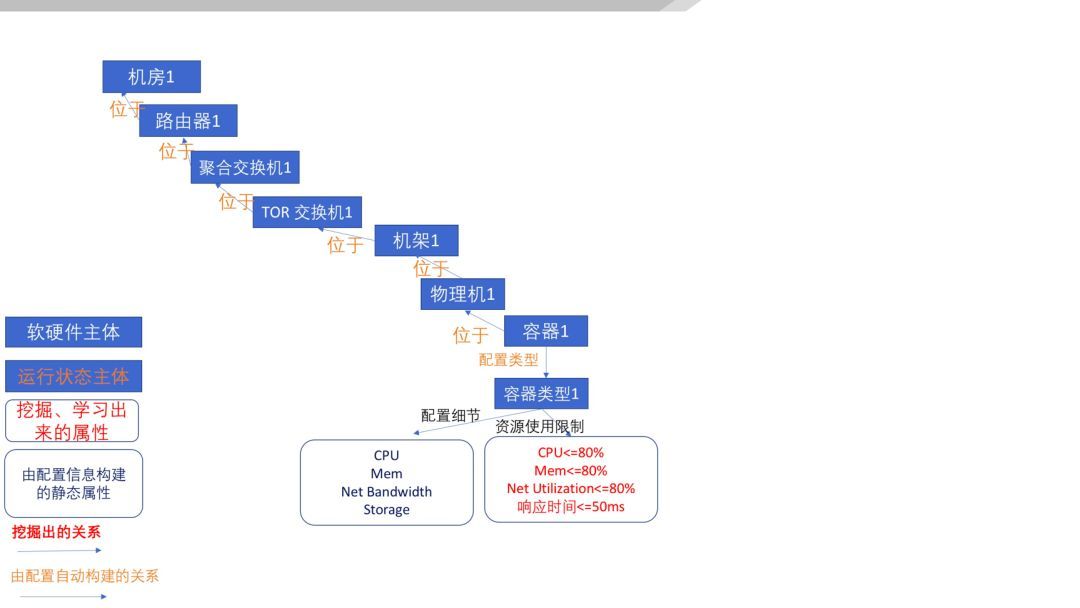 因此我们可以想象这个图谱就形成了一个无所不包的大型数据结构,,,,供我们在其上为各类运维场景开发动态决策算法。。